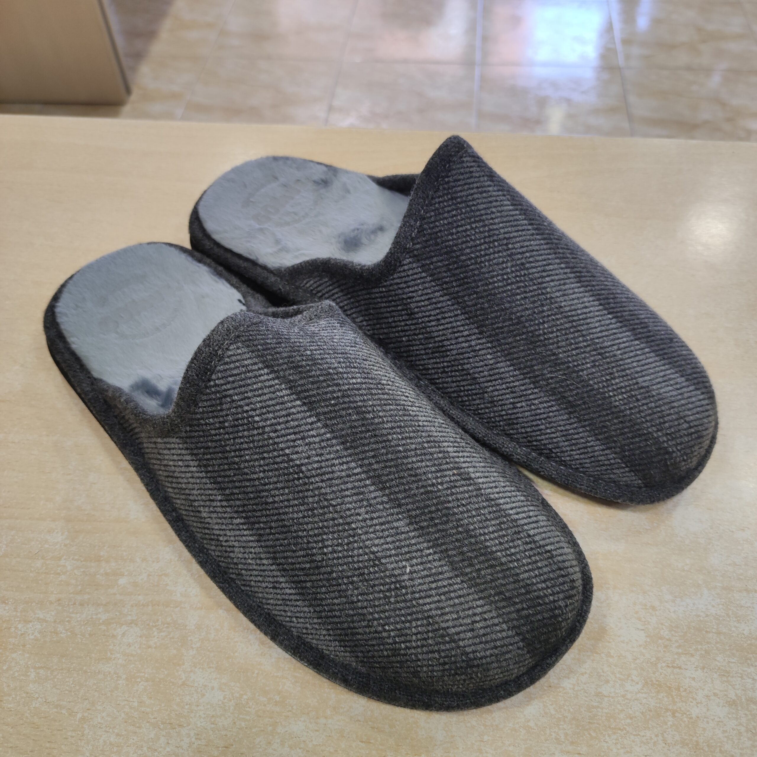 Zapatillas de casa de caballero con suela especial parquet Be Gomus, ligera y silenciosa. En rayas verticales combinadas en grises.